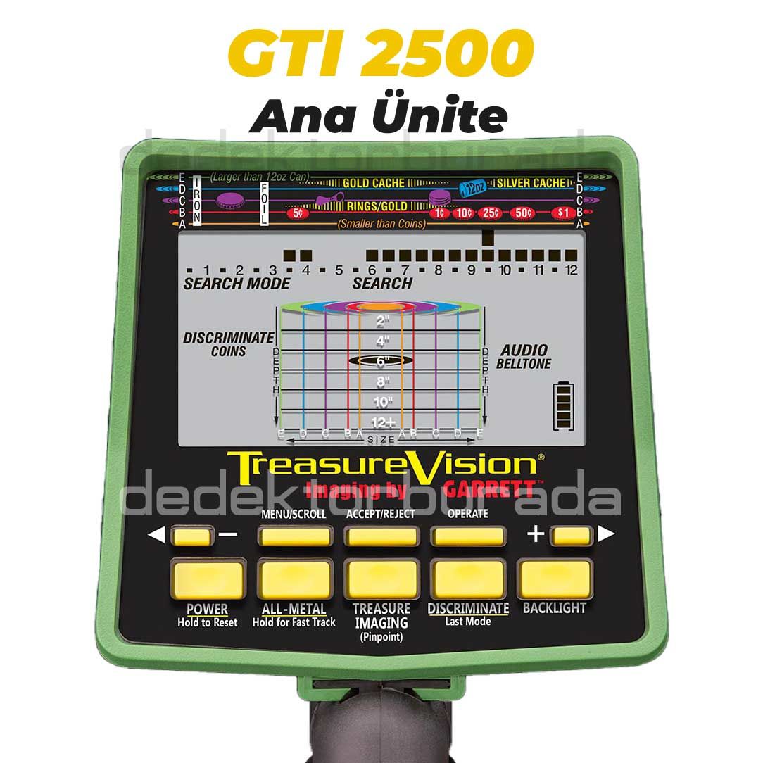 Garrett Gti 2500 Define Dedektörü, bilgisayar devreleri ve microprosesör teknikleri sayesinde, dünyada üretilen diğer dedektörlere göre % 50 daha fazla derinlik ve ayrım gücüne sahiptir. Bu oran defalarca çoğu profesyonel defineciler tarafından denenmiş ve onaylanmıştır. 7,2 kHz'lik yeni 9,5 başlığıyla, bilgisayarlı otomatik toprak ayarı ile Garrett GTI 2500 akıllı ve çok yönlü metal dedektörü olarak dünya dedektör listelerinde ilk sıralarda yer almaktadır. Ayrıca, hedefin boyutunu ve derinliğini ekranda bildirme özelliği diğer dedektörlerden ayrılan en büyük özelliğidir. Garrett GTI 2500 çok karmaşık yapısına rağmen bir tuşa basarak dedektörünüz aramaya geçer. Saniyede milyonlarca hesap yapan otomatik bilgisayar hafızalı devreleri sizin yerinize en sağlıklı ve uygun toprak ayarını yaparak hedeflerin cinsini ve büyüklüğünü eski modellere ve diğer dedektörlere nazaran çok daha sağlıklı bir şekilde saplar.