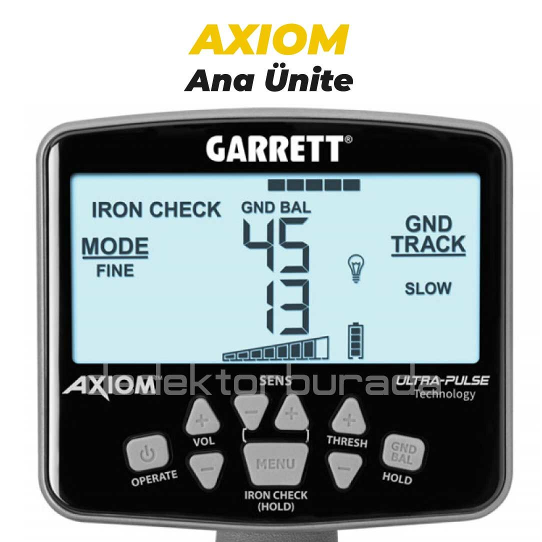 - 4 farklı arama moduna sahip olan Garrett Axiom Altın Dedektör, MS-2 kulaklık ile kullanılabilir.