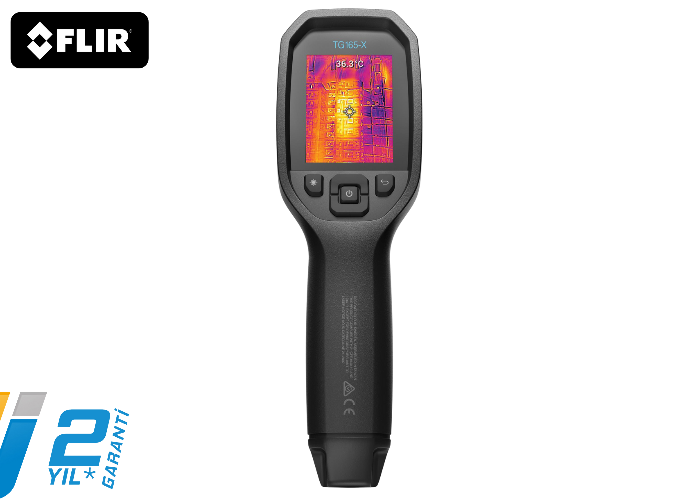 FLIR TG‑165X, taşınabilir ve kullanıcı dostu bir termal kamera olup, elektriksel ekipmanlar, mekanik sistemler ve HVAC gibi endüstriyel uygulamalarda kullanmak için tasarlanmıştır. 160×120 IR sensör çözünürlüğü ve Super Resolution teknolojisi ile görüntü kalitesini 320×240 piksel çözünürlüğe yükseltebilirsiniz. –25 °C ile +380 °C arasındaki sıcaklıkları ölçme yeteneği ile sıcaklık analizi gerektiren çeşitli alanlarda yüksek performans sunar. LED ışık ve lazer hedefleme özelliği sayesinde düşük ışık koşullarında bile doğru ölçüm yapmanıza imkan tanır. Kompakt tasarımı ve IP54 su toz geçirmez koruma sınıfı, cihazı zorlu saha koşullarında bile güvenilir kılar. Fotoğraf ve video kaydı özelliği ile görsel verileri depolayarak ileride analiz edebilirsiniz.