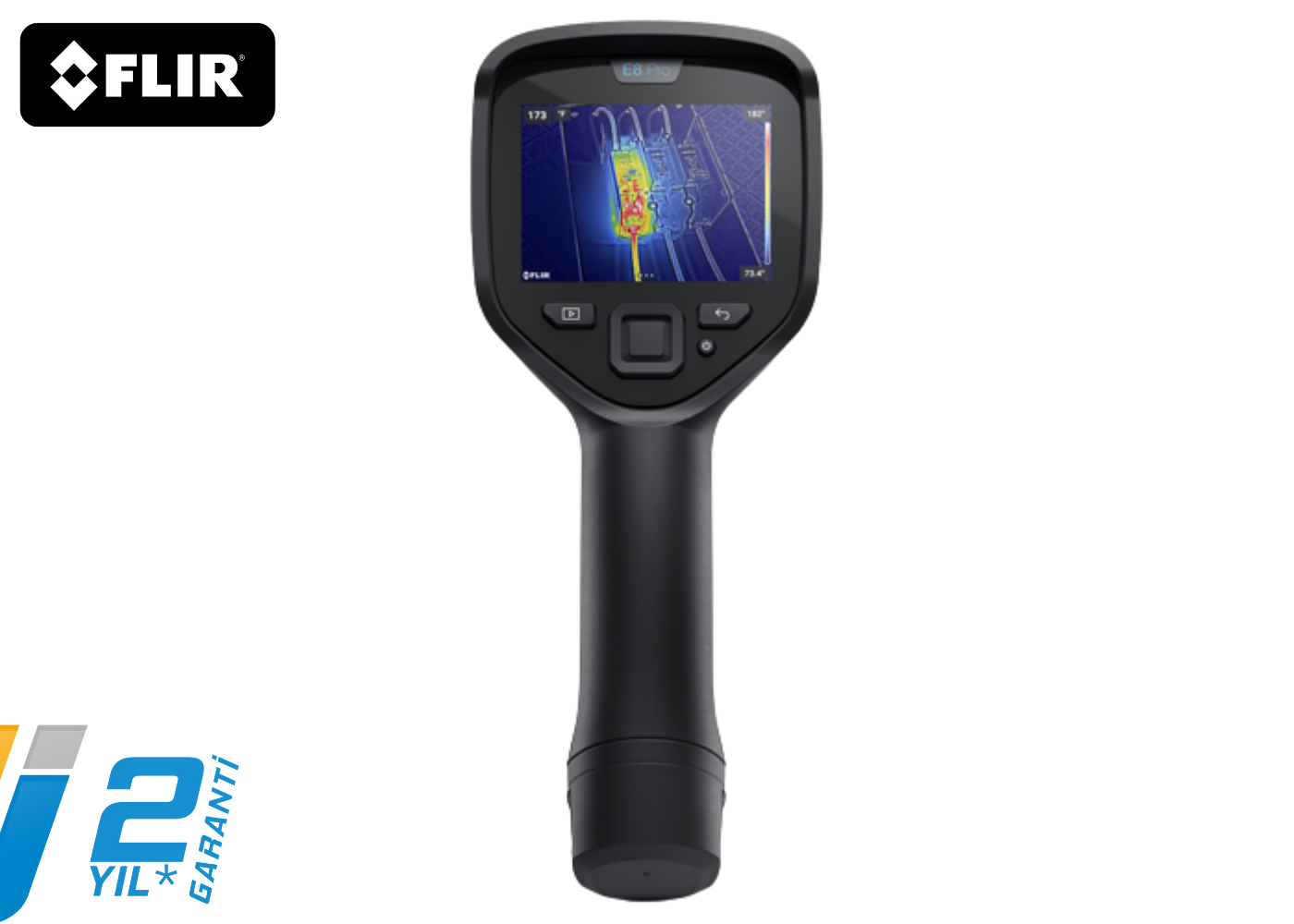 FLIR E8 PRO, profesyonel kullanıcılar için tasarlanmış, yüksek çözünürlük ve gelişmiş analiz özelliklerine sahip bir termal kameradır. 320×240 çözünürlük ve Super Resolution teknolojisiyle bu çözünürlük 640×480'e kadar çıkabilir, böylece daha net ve detaylı görüntüler elde edebilirsiniz. Bu model, –20°C ile +650°C arasındaki geniş sıcaklık ölçüm aralığına sahip olup, enerji verimliliği denetimlerinden elektriksel arıza tespitlerine kadar geniş bir uygulama yelpazesi sunar. Wi-Fi bağlantısı ve mobil cihazlarla uyumlu çalışarak veri kaydı ve analiz işlemlerini kolaylaştırır. Ayrıca, yüksek kaliteli termal görüntüler ve sıcaklık ölçümünü eş zamanlı olarak gösteren kullanıcı dostu ekranı ile her türlü profesyonel kullanım için idealdir.